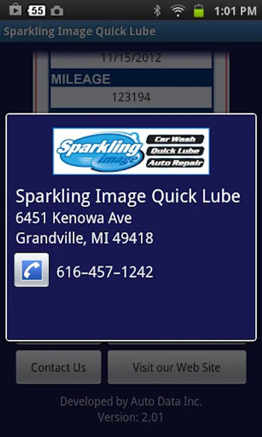 Other features include the ability to schedule a reminder on your calendar based on your vehicle's eSticker date and call up a map to find Sparkling Image Quick Lube.