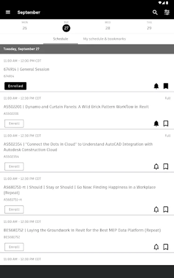 Build and view your schedule by adding classes, keynotes, and networking events.