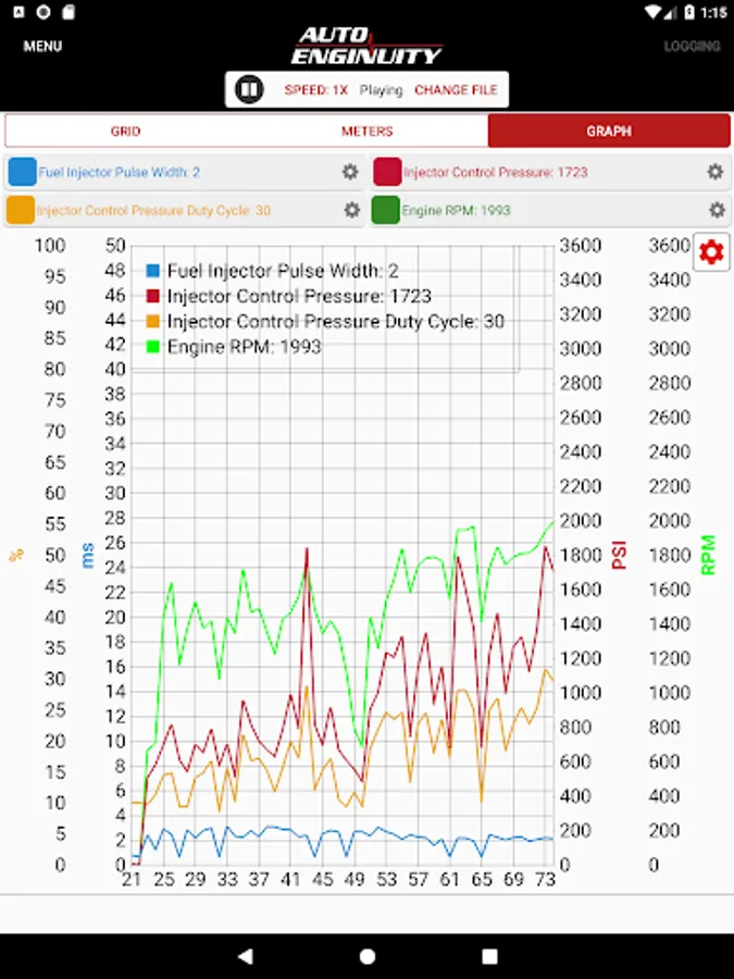 AutoEnginuity® pioneered the art of powerful user-interfaces while never sacrificing the ease-of-use. Our industry-leading graphing can pan, zoom, and display several plots on the same graph with a single click; more advanced graphing features includes tagging plot locations for quick identification and printing the graph.