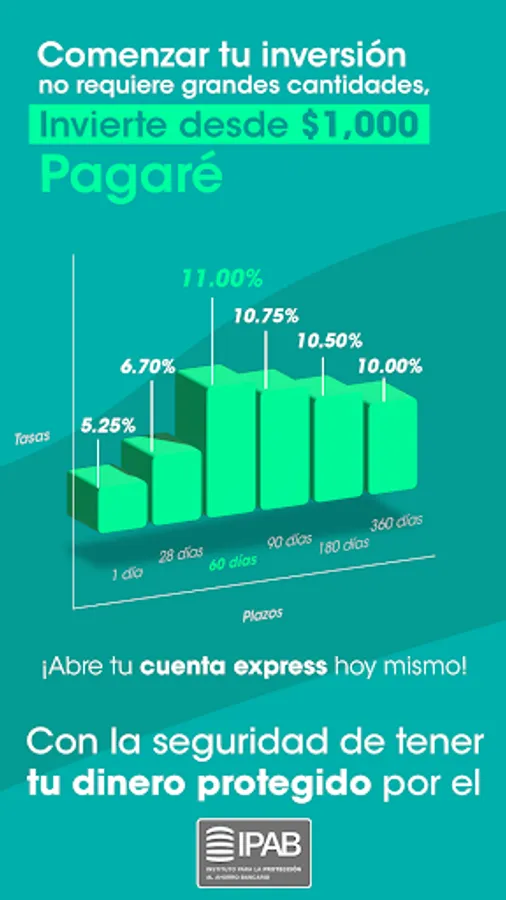• Make transfers to own accounts and other banks (SPEI) without commission.