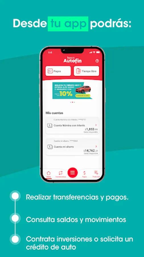 Download your Banco Autofin Móvil APP and perform the following operations: