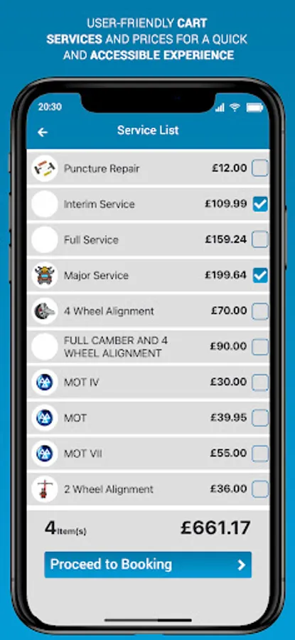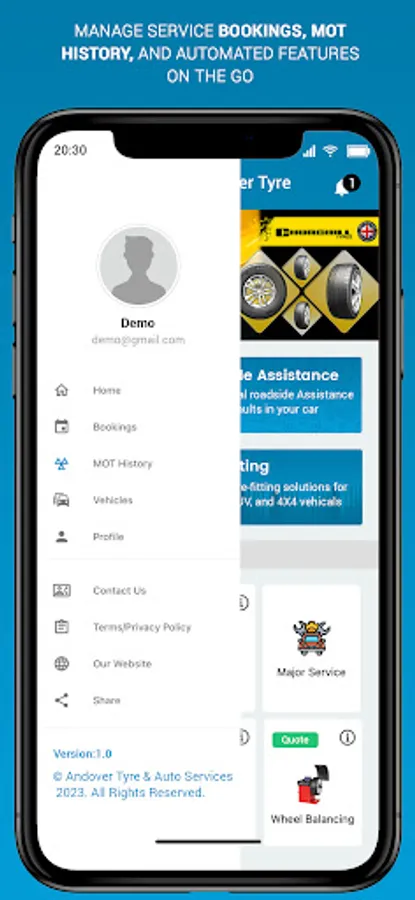 Track your MOT certificate and deadlines coming your way in one click. Get pop-up notifications for your MOT appointments and up-gradation of the vehicle. Explore through the app and find the ideal tyres from several tyre brands available for vehicles of all types in different sizes. Simply add the product or the service you wish to get in the service cart and get an overview of the prices then and there. You can also review your cart, service or product history and track other services through this app. Download the app now to avail exciting offers and great deals waiting for you in the Andover Tyre & Auto Services app.