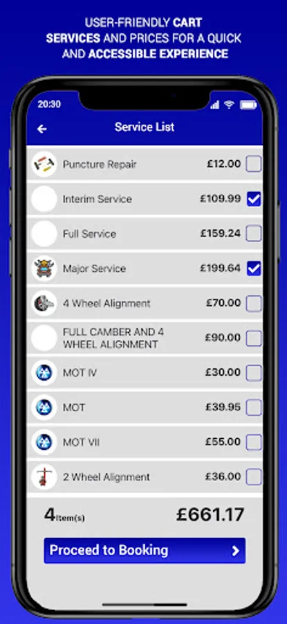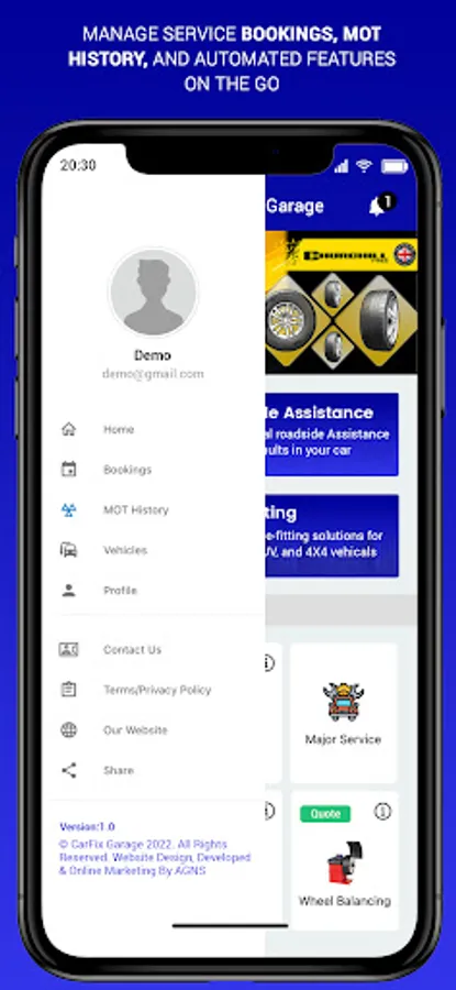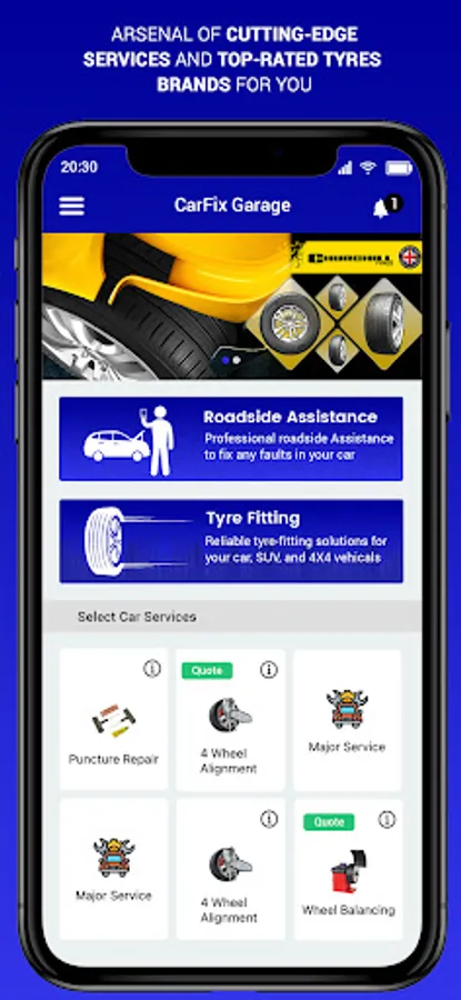 Track your MOT certificate and deadlines coming your way in one click. Get pop-up notifications for your MOT appointments and up-gradation of the vehicle. Explore through the app and find the ideal tyres from several tyre brands available for vehicles of all types in different sizes. Simply add the product or the service you wish to get in the service cart and get an overview of the prices then and there. You can also review your cart, service or product history and track other services through this app. Download the app now to avail exciting offers and great deals waiting for you in the CarFix Garage app.