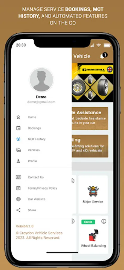 Track your MOT certificate and deadlines coming your way in one click. Get pop-up notifications for your MOT appointments and up-gradation of the vehicle. Explore through the app and find the ideal tyres from several tyre brands available for vehicles of all types in different sizes. Simply add the product or the service you wish to get in the service cart and get an overview of the prices then and there. You can also review your cart, service or product history and track other services through this app. Download the app now to avail exciting offers and great deals waiting for you in the Croydon app.