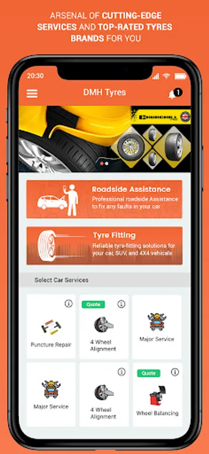 Download the app today and forget about the worries of managing the maintenance and servicing of your vehicle. Experience a hassle-free booking of services and products of your choice from the D.M.H. Tyres app. Be it finding the perfect set of tyres for your vehicle or getting new service, D.M.H. Tyres has brought a whole garage in one app. Book your garage services with the D.M.H. Tyres mobile app for your iOS devices now.