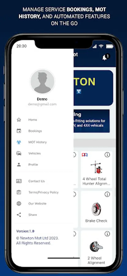 Download the app today and forget about the worries of managing the maintenance and servicing of your vehicle. Experience a hassle-free booking of services and products of your choice from the Newton Mot app. Be it finding the perfect set of tyres for your vehicle or getting new service, Newton Mot has brought a whole garage in one app. Book your garage services with the Newton Mot mobile app for your iOS devices now.