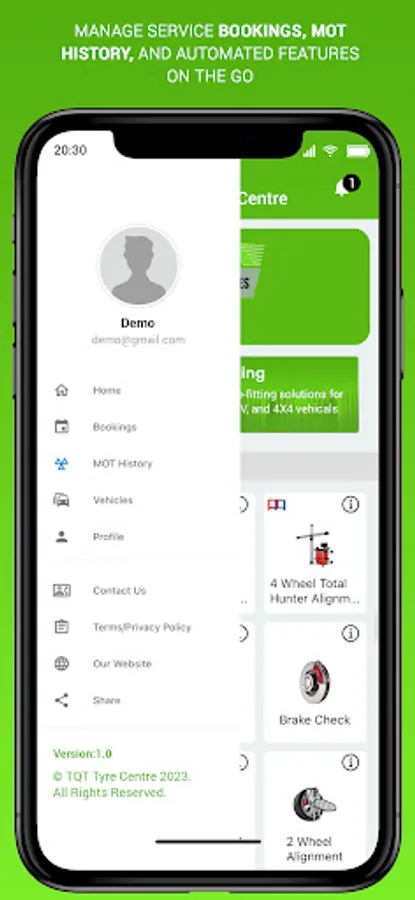 Track your MOT certificate and deadlines coming your way in one click. Get pop-up notifications for your MOT appointments and up-gradation of the vehicle. Explore through the app and find the ideal tyres from several tyre brands available for vehicles of all types in different sizes. Simply add the product or the service you wish to get in the service cart and get an overview of the prices then and there. You can also review your cart, service or product history and track other services through this app. Download the app now to avail exciting offers and great deals waiting for you in the TQT Tyre Centre app.