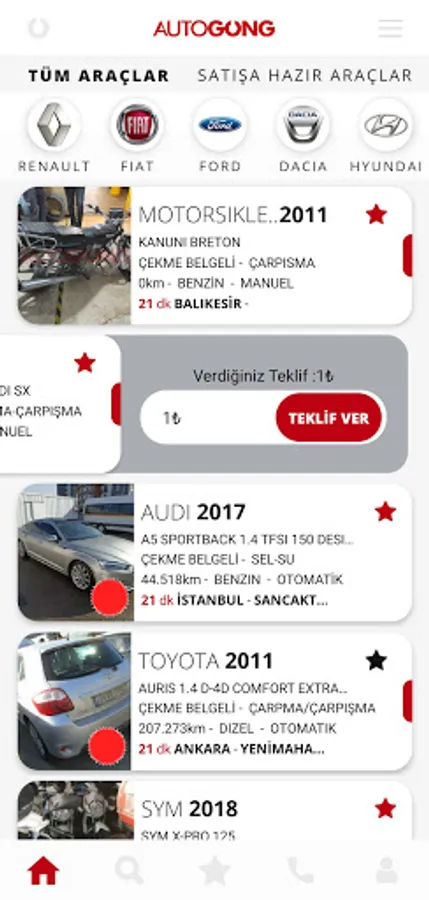 the largest insurance companies in the sector and the damaged vehicle fleet company and commodity products through online auction method by which the sales and after sales support that Turkey is the most recent and largest auto auction platform.
