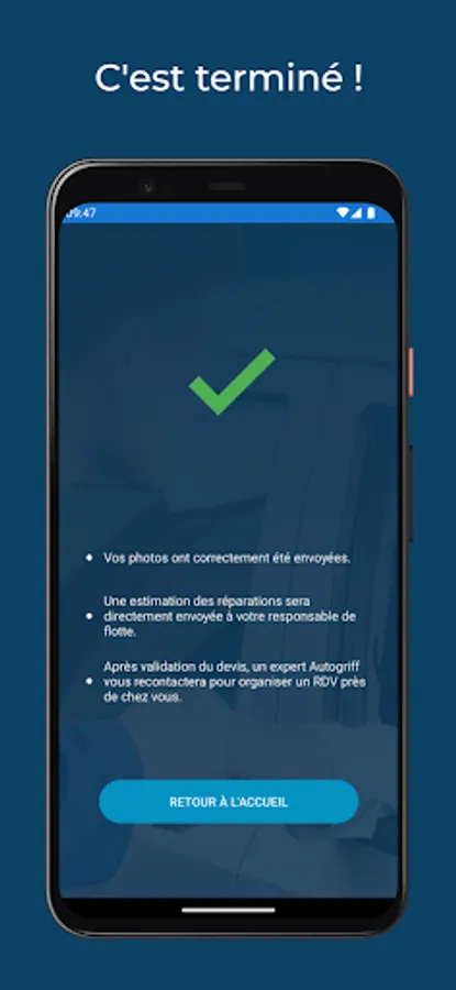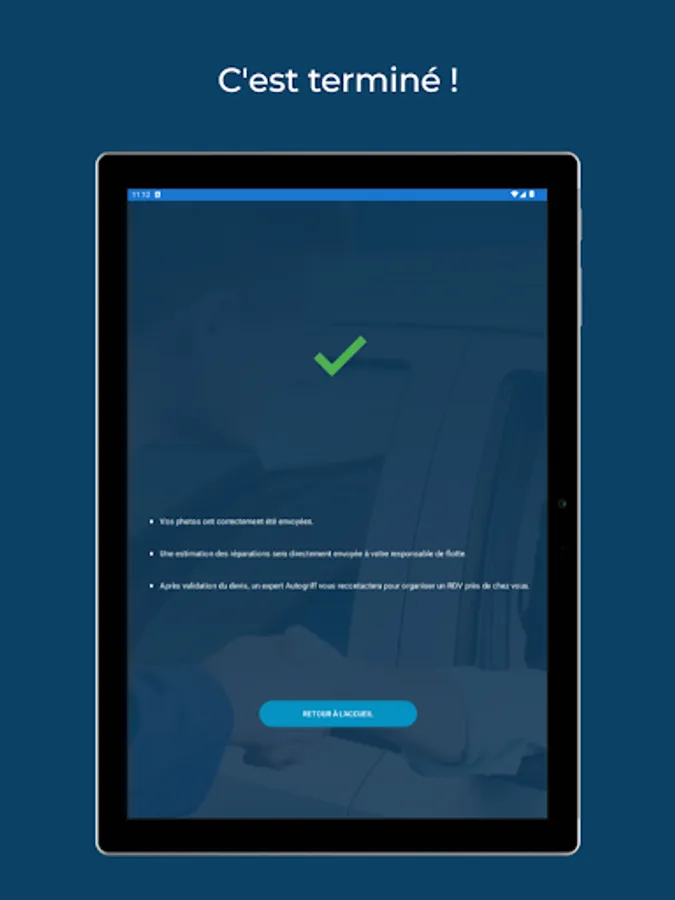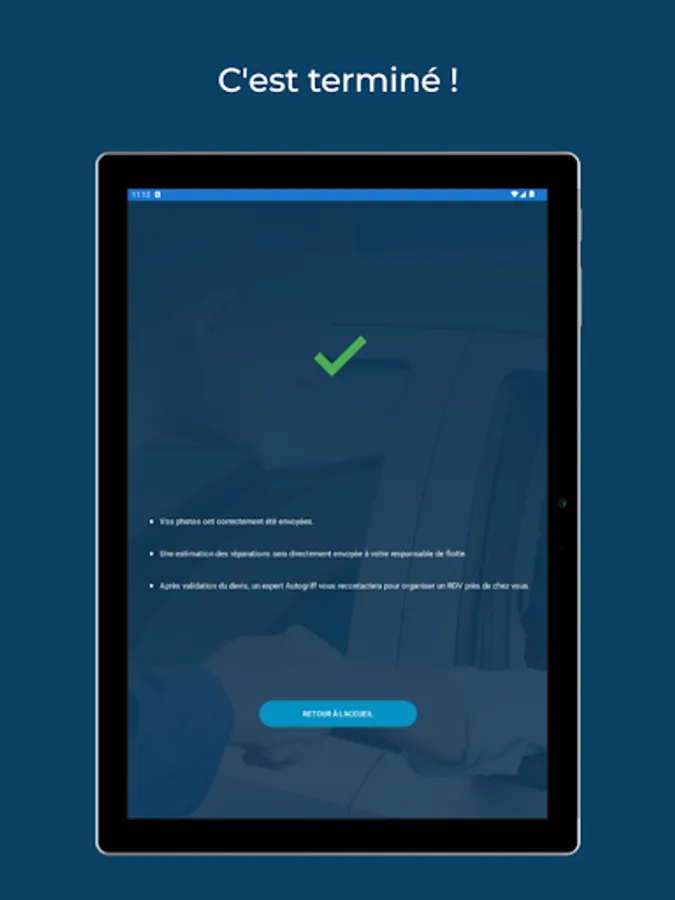 The estimate is done remotely thanks to an application and an account dedicated to your company. The application is specifically developed to allow each driver to take a video of his incident in a few seconds.