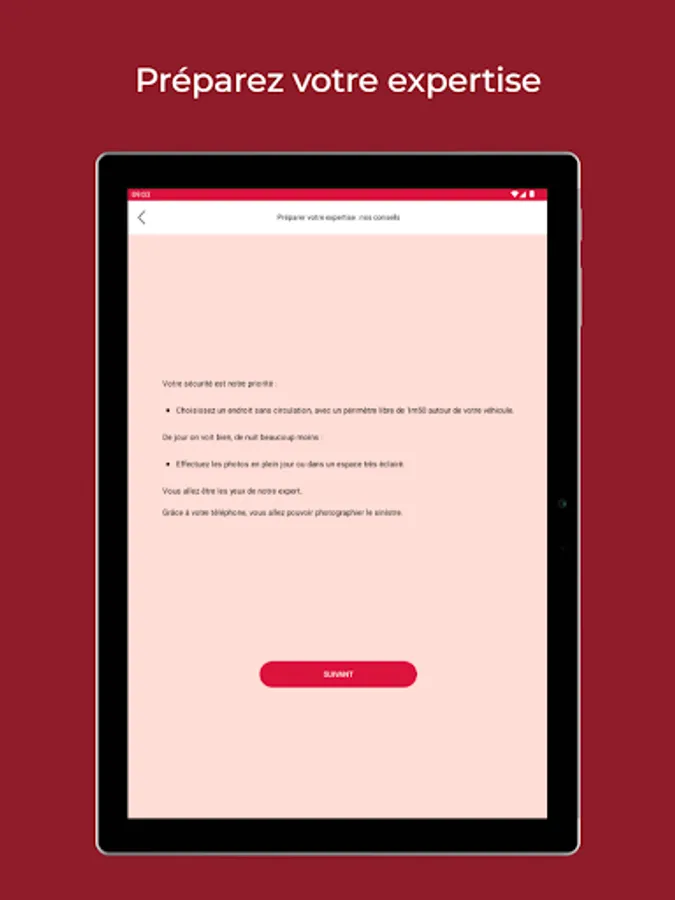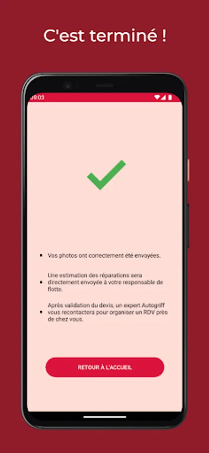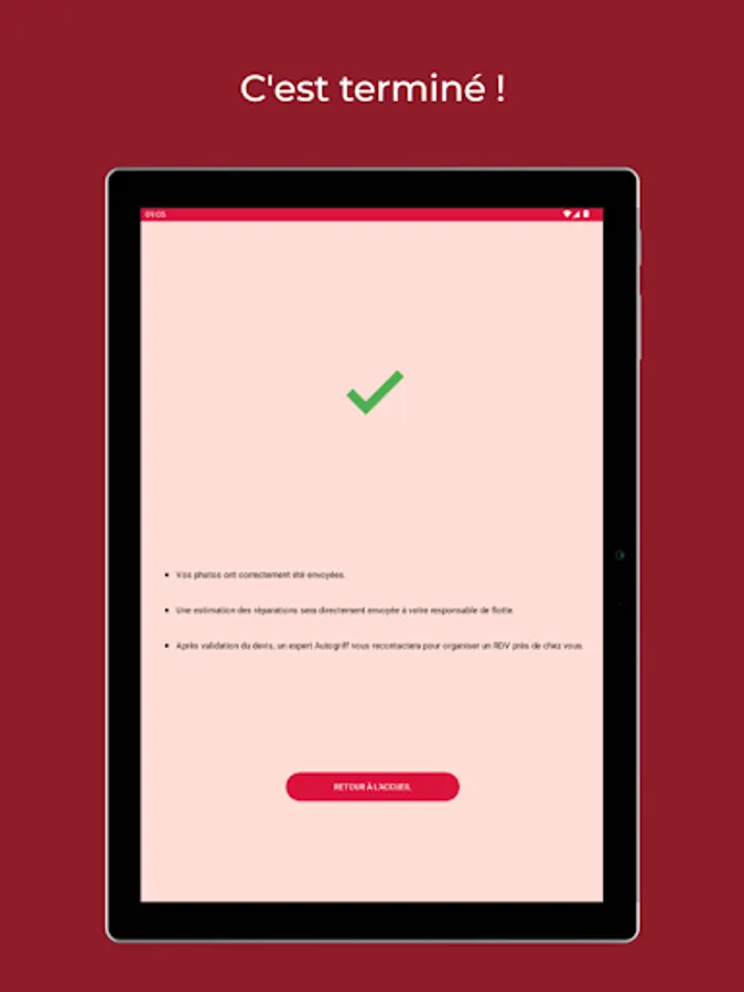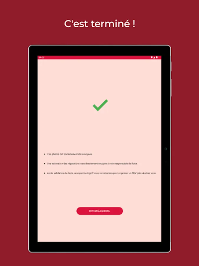 The estimate is done remotely thanks to an application and an account dedicated to your company. The application is specifically developed to allow each driver to make a video of his accident in a few seconds.
