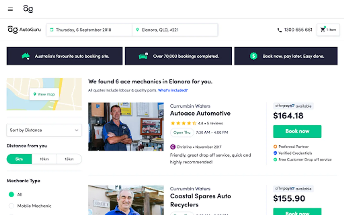 We offer customers convenience! We understand that customers are time poor and stressed with the burden of finding a reliable, local mechanic. At AutoGuru, we make it convenient by making it as easy as possible to access a well-suited, high quality, local mechanic. We let you get quotes and book from an entire marketplace of workshops, nationwide, 24 hours a day, 7 days a week, something that hasn’t been done before in the automotive service and repair industry. You can search, get quotes, compare and book.