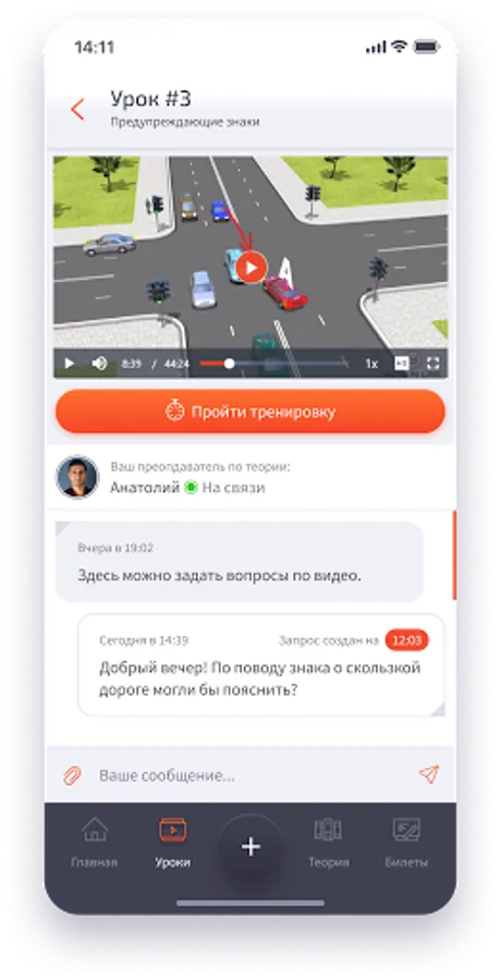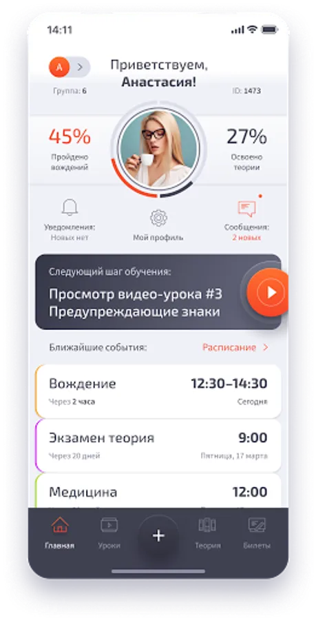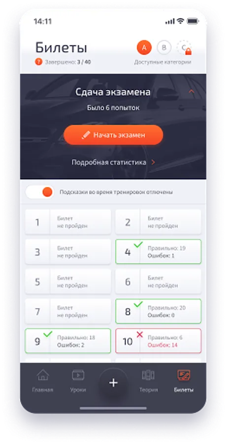 1 - choose a driving school from the list of partners and pass the theory remotely in the mobile application