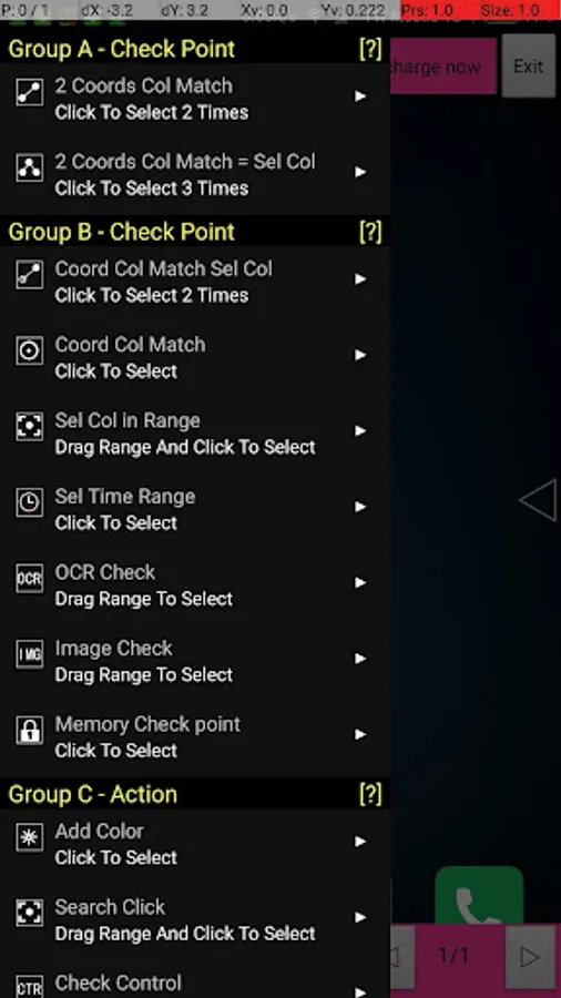 match conditions trigger Taps, Swipes, pauses supported (Drag is still in beta stage, if experience any problem restart and try again using another mode)