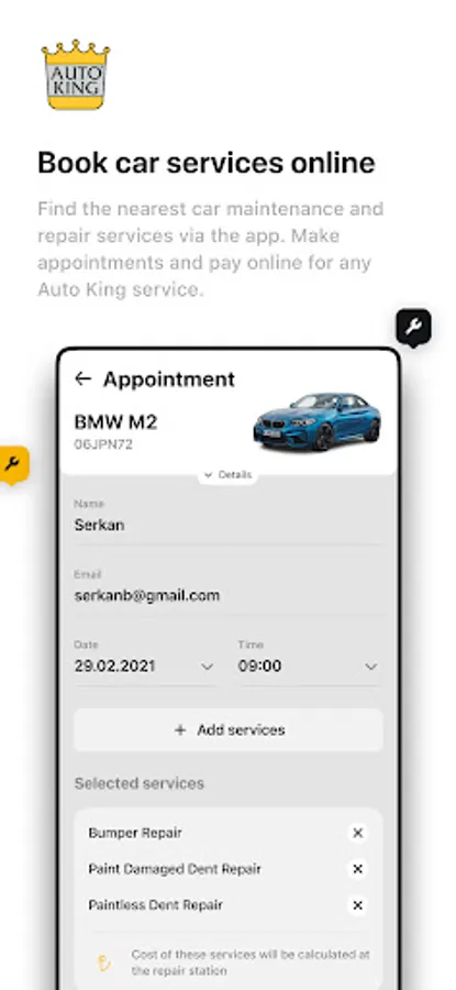 With the Auto King mobile app, all your car care & maintenance needs are now at your fingertips. Moreover, you can track the status of your car in the service in real time.