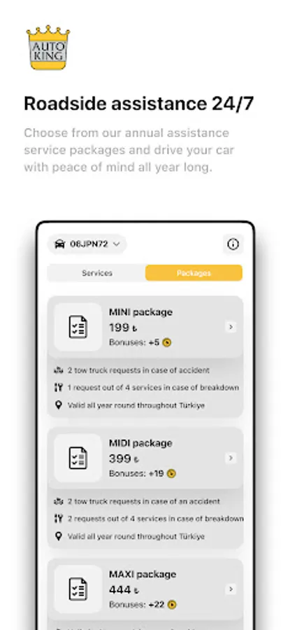 Be prepared for any unexpected situation you may encounter on the road. Get a MINI, MIDI or MAXI assistance package from the app and drive with peace of mind all year round.