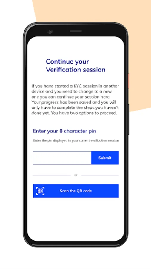 • Scan the QR code or enter the 8-digit PIN provided by the financial institution