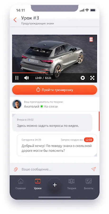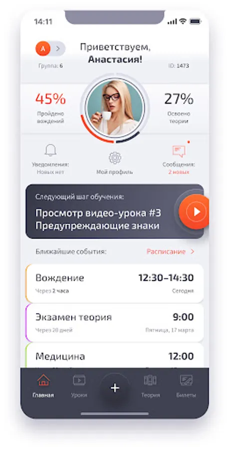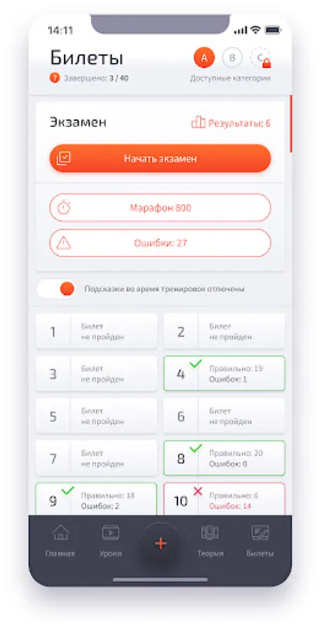 1 - select a driving school from the list of partners and pass the theory remotely in the mobile application