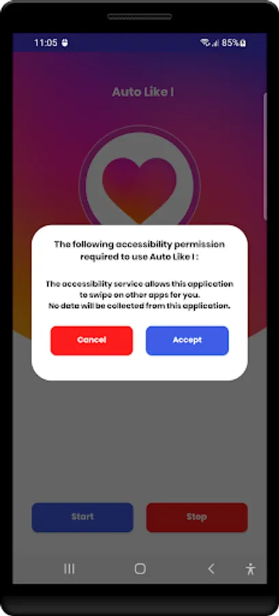 Auto Like I require accessibility permission to automate likes on the supported/selected social media app.