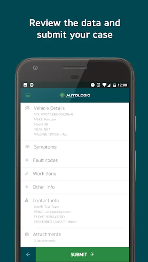 The app collects details of your problematic car by asking a few simple questions. Read the VIN using the integrated VIN barcode scanner or UK registration look-up, attach photos or videos to support the diagnosis and our team will contact you to help resolve your problem.