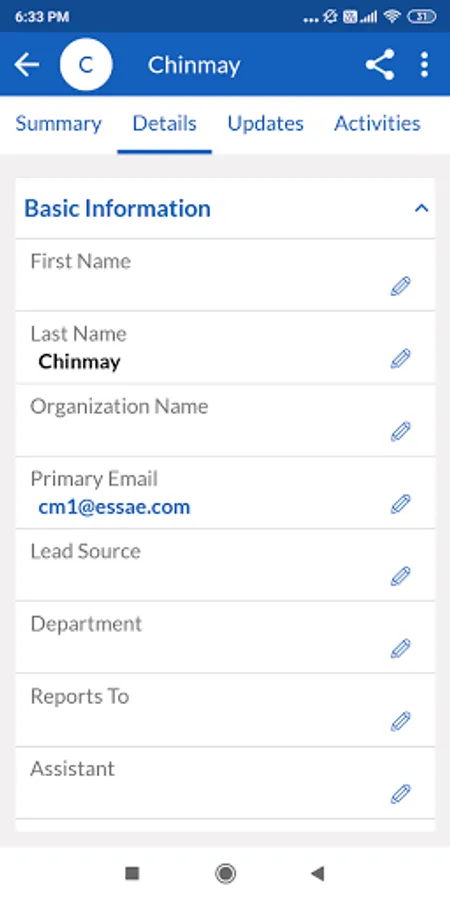 Customized Mobile application for automateCRM for Essae. The application allows the users to access automateCRM and perform various actions.