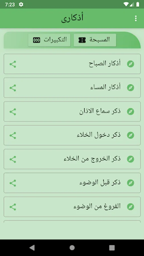Remembrances - the daily remembrances of the Muslim that he needs with the presentation of the credit and the number of repetitions of the dhikr with the possibility of sharing the dhikr