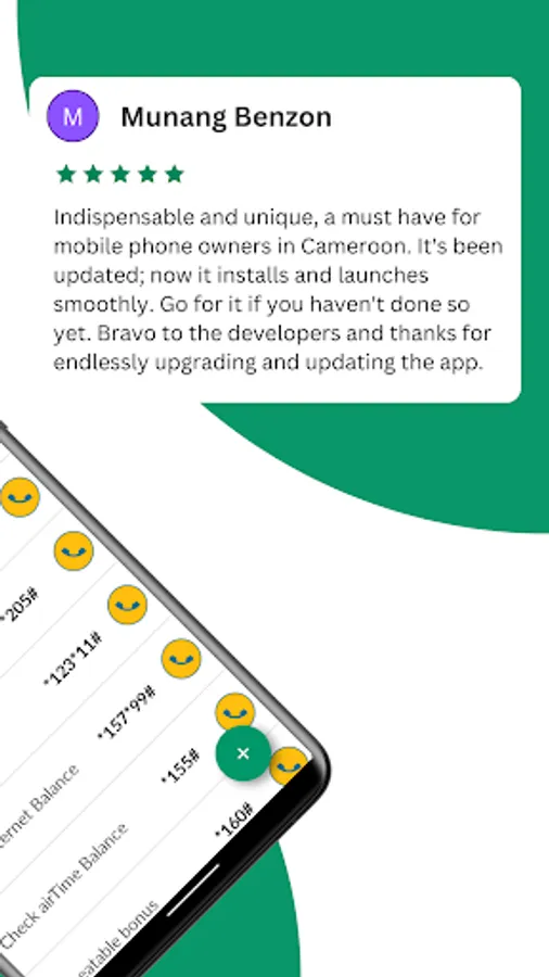 Thanks for using CamCodes, we hope this application has help you out with the stress of having to memorise short codes for Cameroon Network operators.