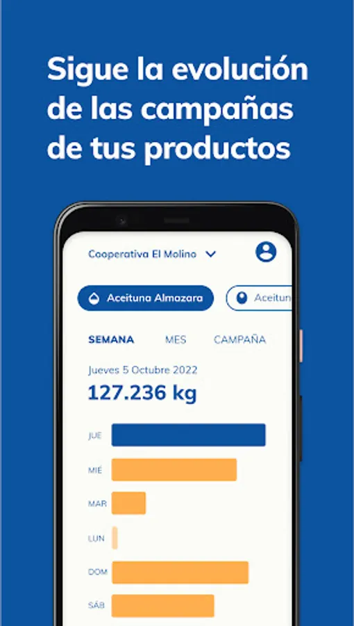 With SIC Itea you will receive the tickets of your weighings and analysis of the products, you will be able to see the evolution of the campaign, yields and volume of kg. accumulated.