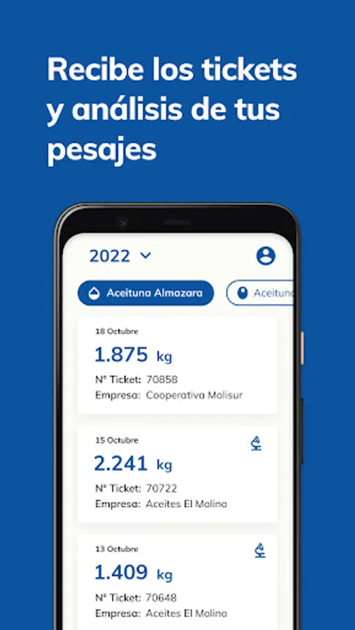 SIC Itea is the app that allows you to have access to the weighing data of your agricultural products: olive oil mill, olive dressing, orange, avocado or grape.