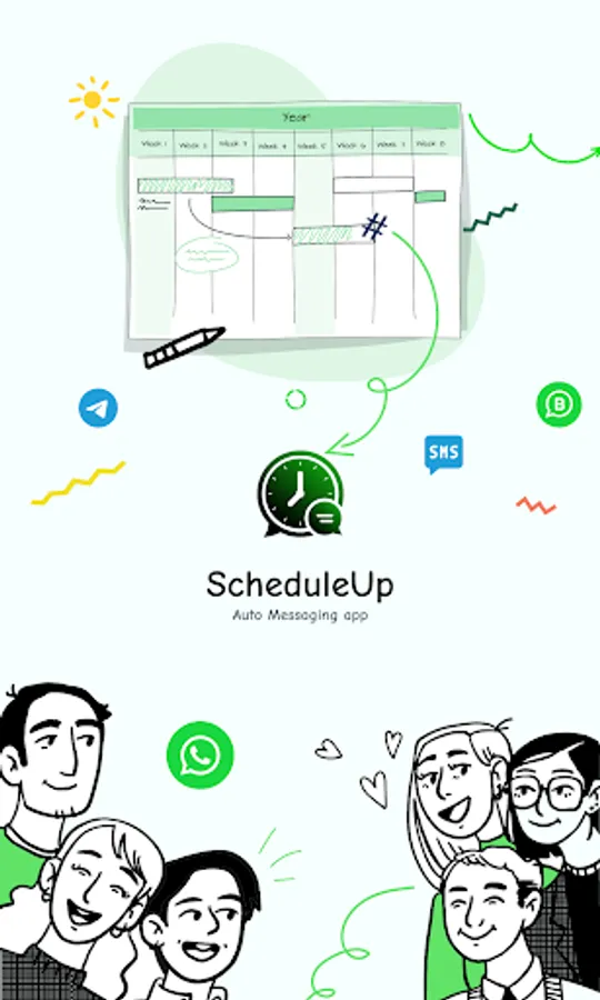 ScheduleUp is not affiliated with WhatsApp and Telegram in any way. WhatsApp is a registered trademark of WhatsApp Inc. TELEGRAM is a trademark of TELEGRAM FZ-LLC.