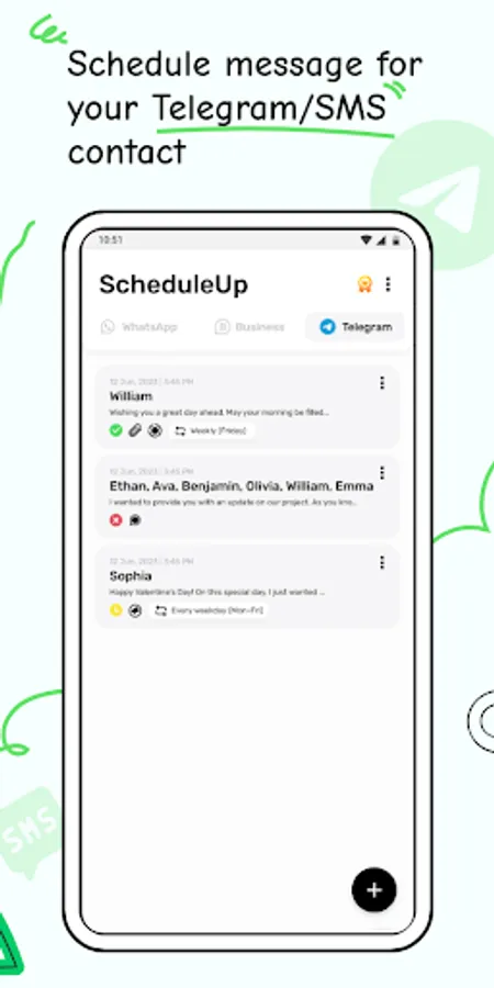 🔰Message Scheduler for WhatsApp, Telegram, WhatsApp Business and SMS