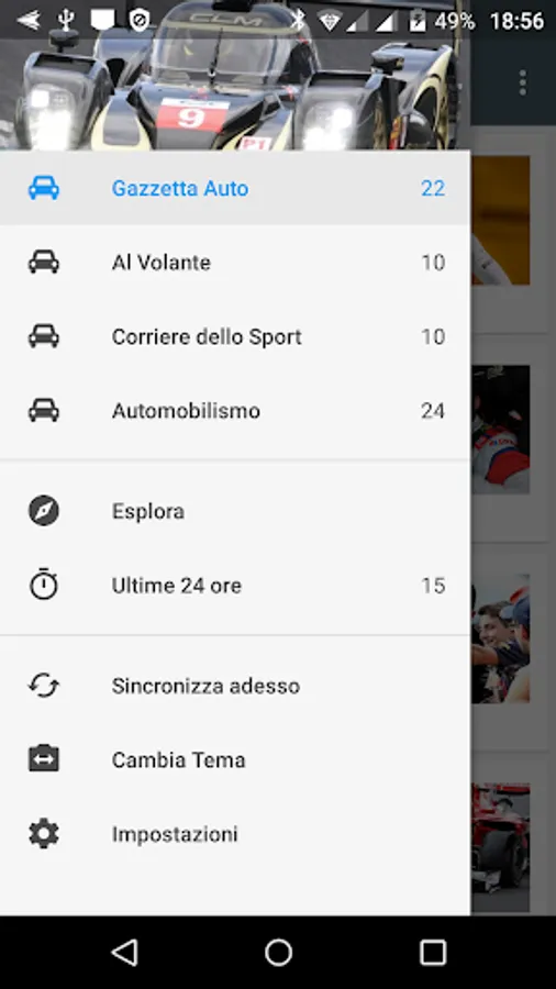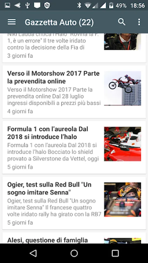 App that collects news in Italian relating to motoring, Formula 1 and engines.