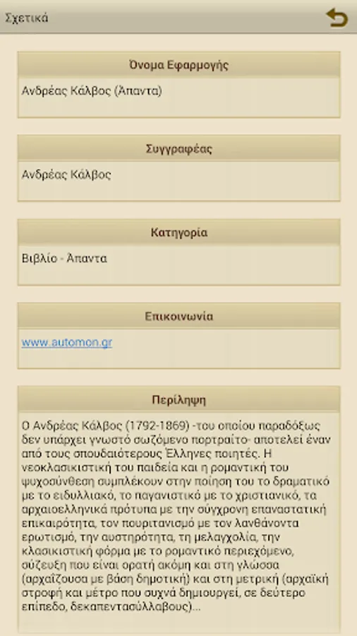 Andreas Kalvos (1792-1869) -of which oddly is not known surviving portraito- is one of the greatest Greek poets. The education of neoclassical and romantic temperament of the interconnect in the dramatic poetry of the idyllic, the pagan and the Christian, the ancient patterns with modern revolutionary news, the puritanism with latent eroticism, the severity, the melancholy, the classicist form with romantic content, coupling is visible even in language (archaic by city) and metric (archaic turn and measure often creates a second level of fifteen) ....