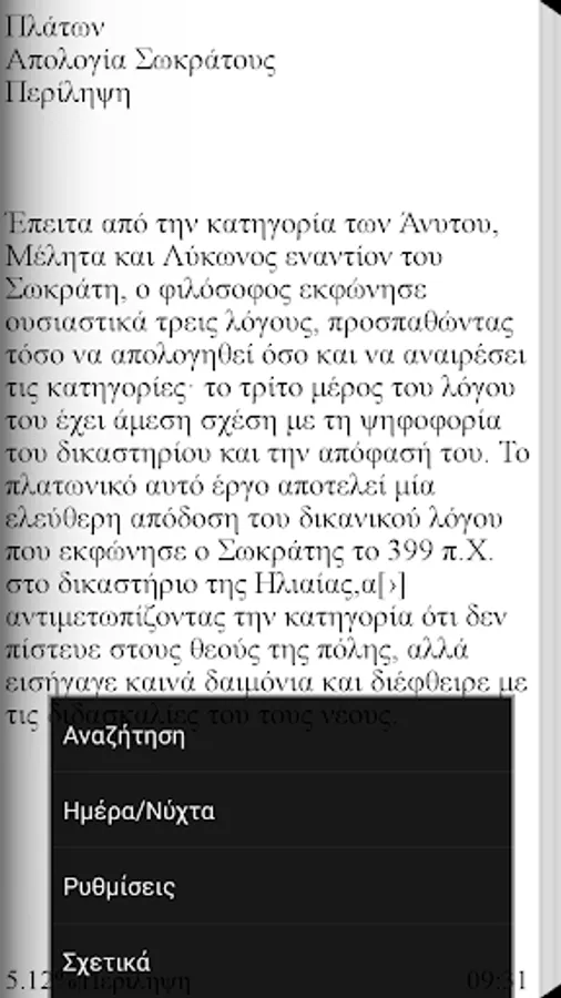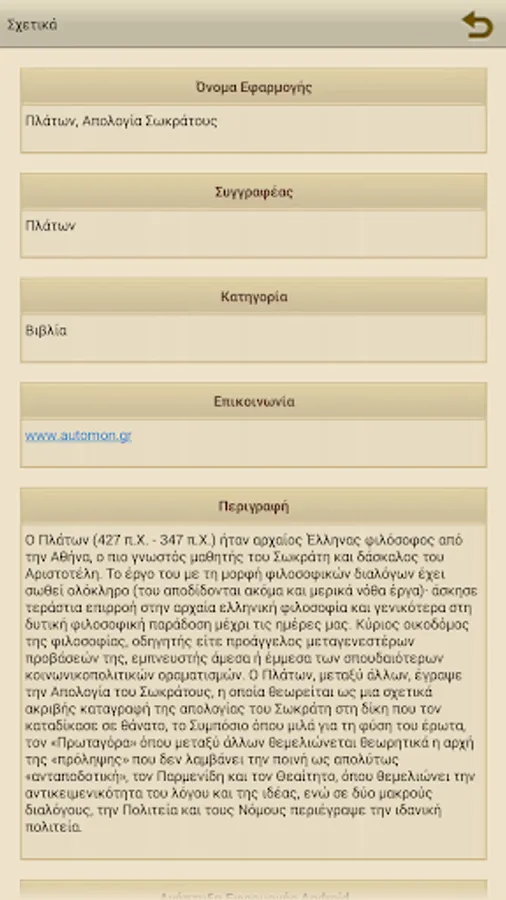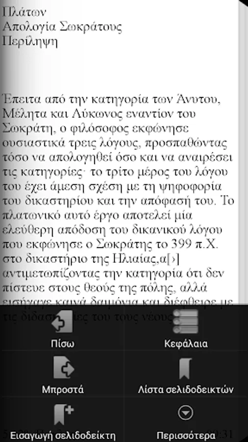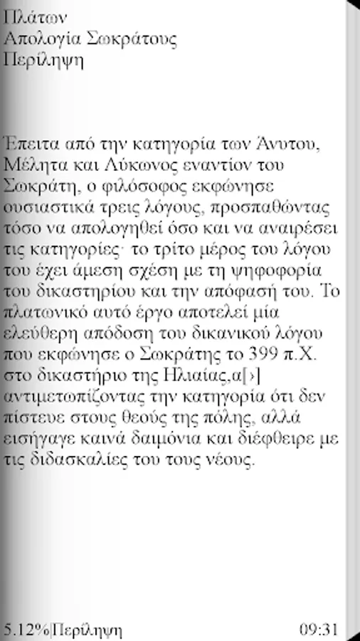 Plato (427 BC - 347 BC) was an ancient Greek philosopher from Athens, the most famous pupil of Socrates and teacher of Aristotle. His work in the form of philosophical dialogues has saved the whole (of recoverable even some spurious works) had a huge influence in ancient Greek philosophy and in general in the western philosophical tradition until today. The main builder of philosophy, guider or harbinger of subsequent pre-basic, inspired directly or indirectly the most important socio-political visions. Plato, among others, wrote the Apology of Socrates, which is regarded as a relatively accurate record of the apology of Socrates in the trial that sentenced him to death, the Symposium where he talks about the nature of love, "Protagoras" where among other things founded theoretically the principle of "prevention" that does not take the penalty as absolutely "rewarding" Parmenides and Theaitito, which establishes the objectivity of speech and idea, while two long dialogues, the State and the Laws described the ideal state.