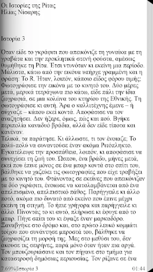 The idea for Rita came to me-as I've written elsewhere-at the time I had something else in mind. Staring at the internet, I found a notice from the Site literary calling entries in a version with mikrodiigimata, with a limit of 127 words. As I think I did not have the necessary experience nor the necessary technique for this, I saw it as a challenge to try to write something so limited in extent. So I wrote the story about the guy who confesses his love to the wrong woman - I came, however, larger than the threshold was set. I tried to write something else, but even that was quite small in area. The thing is, and this second version had the same protagonist - a mysterious woman named Rita. It was then that I got the idea for the stories of Rita, a series of thirty stories, not necessarily with the same protagonist, but with the same name always present. I decided to write one every day and to post them on my blog (http://eliasnisaris.blogspot.gr). Unemployed s, gave me the idea, very simply something to deal a challenge to have to deal and overcome every morning. The stories went on my blog from mid-November to mid-December 2013, but not in order to be read here. I hope you like them as much like me and the process of writing them.