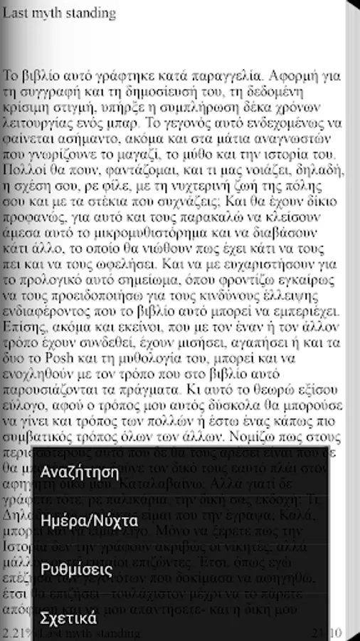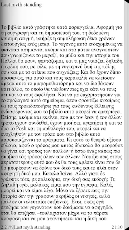 This book was written to order. The occasion for the writing and publication, at that critical moment, was the tenth anniversary of a bar. This might seem trivial, even in the eyes of readers who know the shop, legend and history. Many will say, I guess, and what we care about, that is, your relationship, man, nightlife your city and the places they frequent? And obviously you are right, for this and please close this mikromythistorima directly and read something else, which will feel they have something to tell them and benefit them. And thank me for this introductory note, where care in time to warn them about the dangers of lack of interest that this book may contain ...