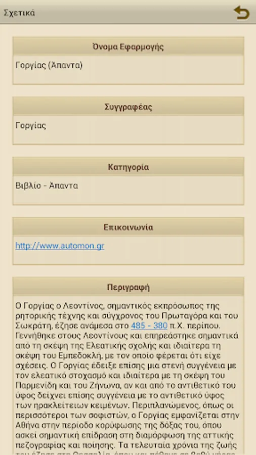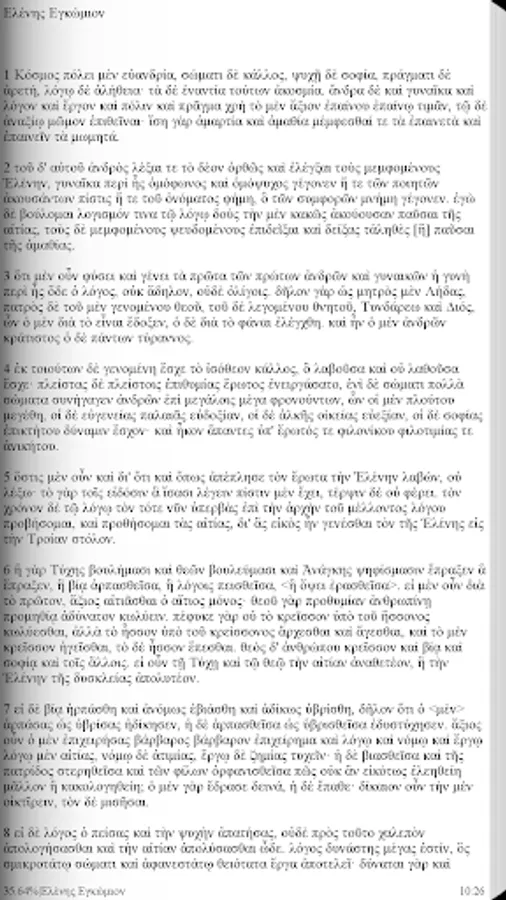 The Gorgias the Leontinos, an important representative of the art of rhetoric and contemporary of Protagoras and Socrates, lived between 485-380 BC about. Born in Leontinous and significantly influenced by the thought of the Eleatic school, especially the thought of Empedocles, which allegedly had relations. The Gorgias also showed a close affinity with Eleatics reflection and especially with the thought of Parmenides and Zeno, although the oppositional style also shows affinity with the opposite style of irakleiteion texts. Wanderer, like most of the sophists, the Gorgias appears in Athens at the peak period of glory, which has significant influence on the formation of Attic prose and poetry. The last years of his life he lived in Thessaly, where he died at the ripe old age in full lucidity ...