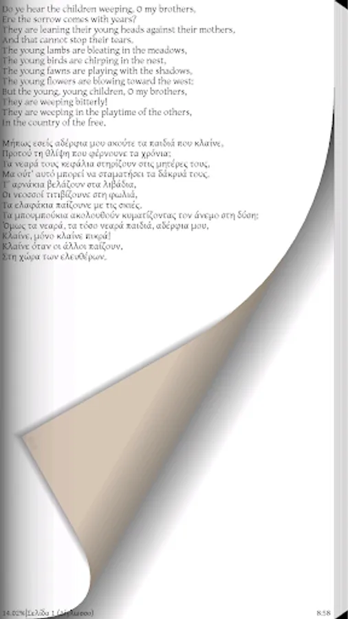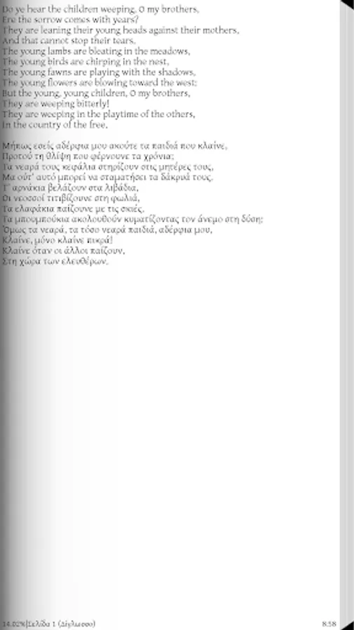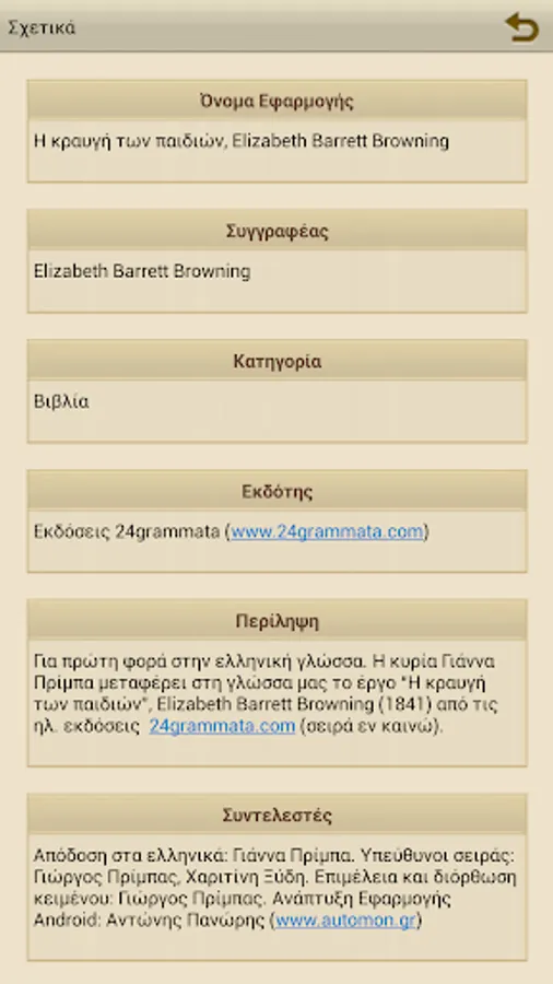 For the first time in the Greek language. H Mrs Gianna Primpa carry in our language the play "The cry of the children", Elizabeth Barrett Browning (1841) versions of e 24grammata.com (series in Kaino).