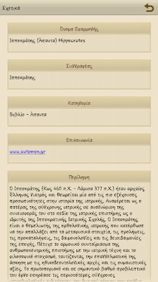 Hippocrates (Kos 460 BC - Larisa 377 BC) was ancient Hellene doctor and considered one of most outstanding personalities in history of medicine. Refers as the father of modern medicine in recognition of its contribution to field of medical science as the founder of Hippocratic Medicine School. Hippocrates is the establisher of rational medicine that succeeded thus to relieve it from the metaphysically elements, superstitions, prejudices, the Demonology and superstitions of the era. Accomplished the harmonious matching of anthropocentric science with medicine art and the philosophical contemplation, equating her professional exercise with the ithikodeontologikes principles and Humanistic values. The pioneering and in important degree predictive of work influenced the Most modern iatroviologikes specializations of western world that deservedly named him founder and stylobate of Medicine Science. Specifically, is credited by advancing to large degree of systematic study of clinical medicine, summing up the medical knowledge and prescribing practices for doctors through the Hippocratic Corpus (Corpus Hippocraticum) and other projects.