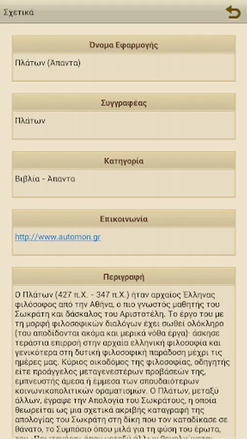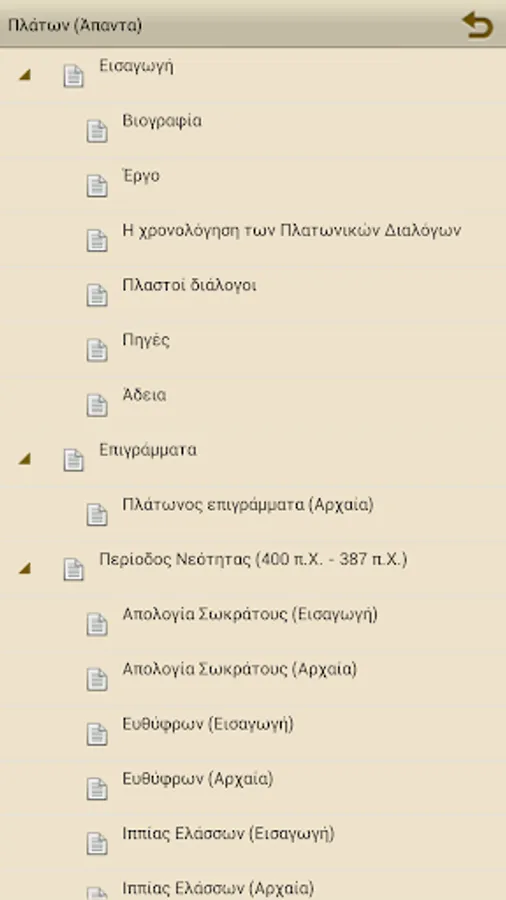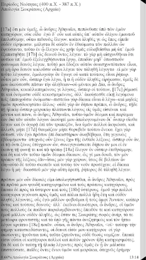 A free application to Ancient Greek texts of Plato (without translation) divided into 5 categories, 30 books and 50 volumes: