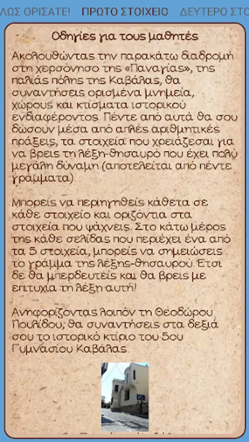 Live Educational Game for the old city of Kavala, on the peninsula of "Lady".