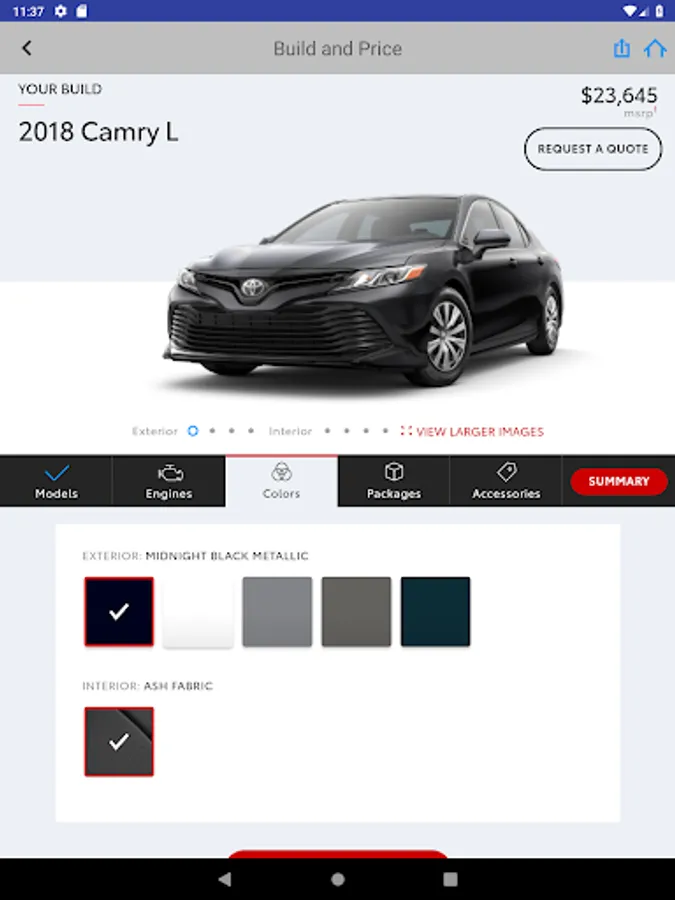 SHOP: The Toyota Camry app lets you research, price, and browse Camry inventory around the country. Find your Camry right here, right now.