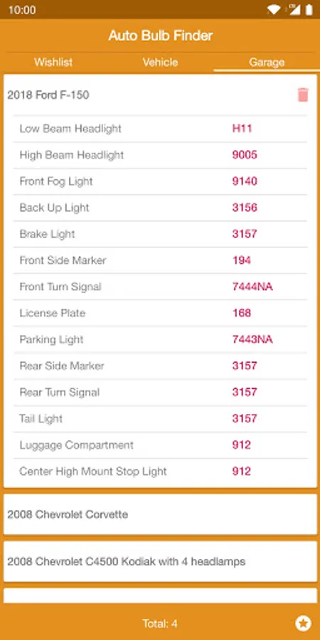 This is an app for checking automotive headlight bulb models.