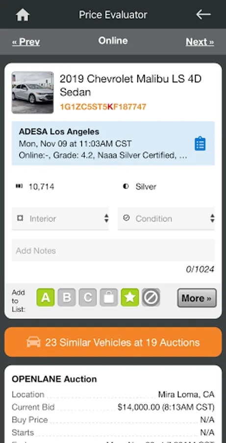 AUCTION INVENTORY - Access to inventories from over 500 auction locations, along with available photos and condition data. Browse upcoming inventory and navigate quickly through runlists for MANHEIM®, Edge Pipeline™, ADESA®, OVE®, SmartAuction®, and many more. Evaluate vehicles, add them to lists, and add your own notes and photos, all in one place. Get unlimited evaluations and access to over 300,000 vehicles on average with an autoniq subscription.