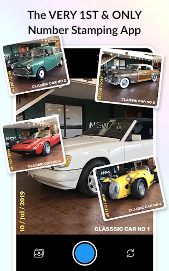 ‘Auto Numbering Photo App’ helps to add number sequence stamps on photos when clicking from Watermark Camera.