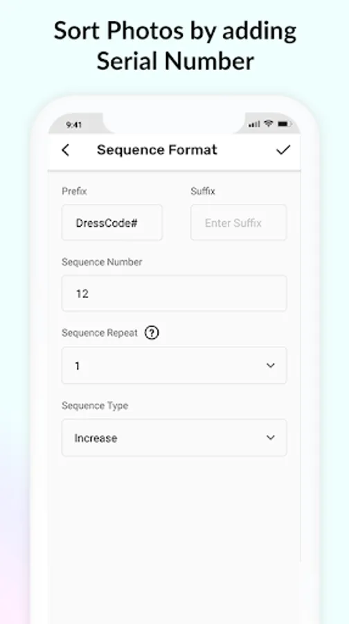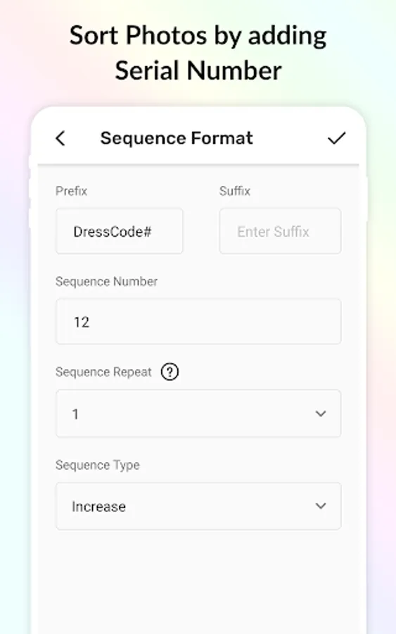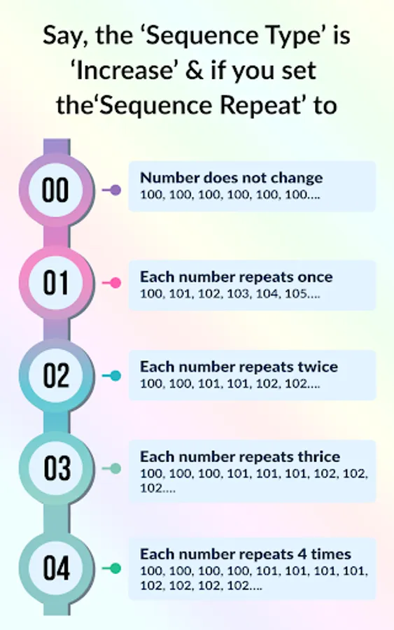 ➺ Sequence repeat option to repeat particular number sequence for photo