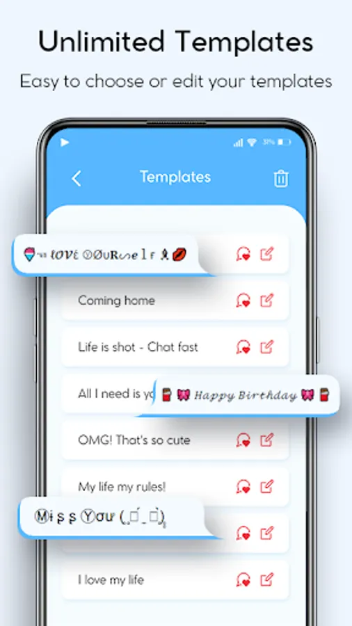 AutoSnap Keyboard makes it easier for users to Create their own text templates with Emojis, Symbols and share with friends using Text Spam Feature in Phrase Keyboard App.