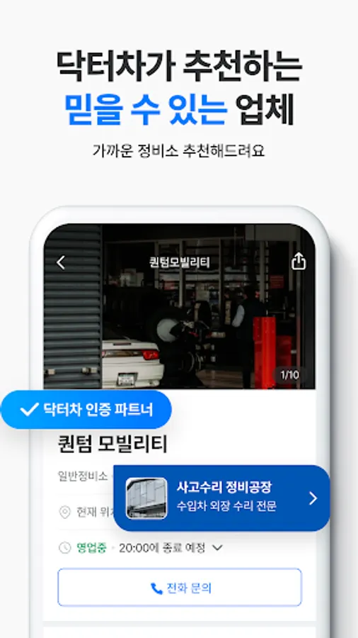 Dr. Car solves your car maintenance/maintenance concerns based on the experience of field experts, 700,000 domestic maintenance case data, and information on 40,000 vehicle companies nationwide.