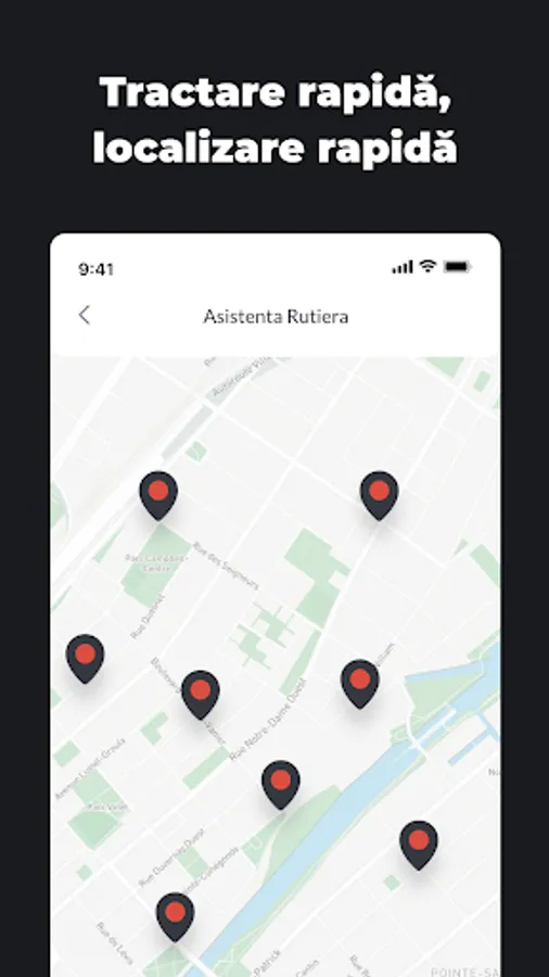 • Găsești servicii de tractare, le contactezi direct din aplicație și le trimiți imediat locația
