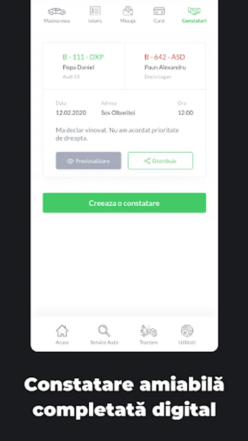 În cazul nefericit al unui accident ușor, ai formularul de constatare direct în aplicație și îl completezi simultan cu celălalt șofer, fără teama greșelilor de completare. La final, îl trimiți electronic asiguratorului și gata!