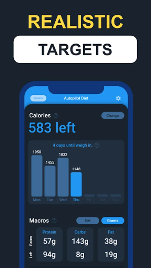 With weekly calorie and macronutrient targets this smart calorie calculator doesn't let one bad day stop you from reaching your weight gain or weight loss goals. Ate too much or little one day? No problem, make it up over your week in manageable amounts. Autopilot Diet automatically adjusts to keep you on track. Autopilot helps guide you to learn how to keep track of calories to gain weight, lose weight or maintain weight. Become a healthier, happier version of you!